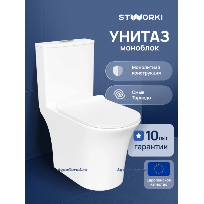 Унитаз-моноблок STWORKI Олланд напольный с микролифтом безободковый белый S01406WH
