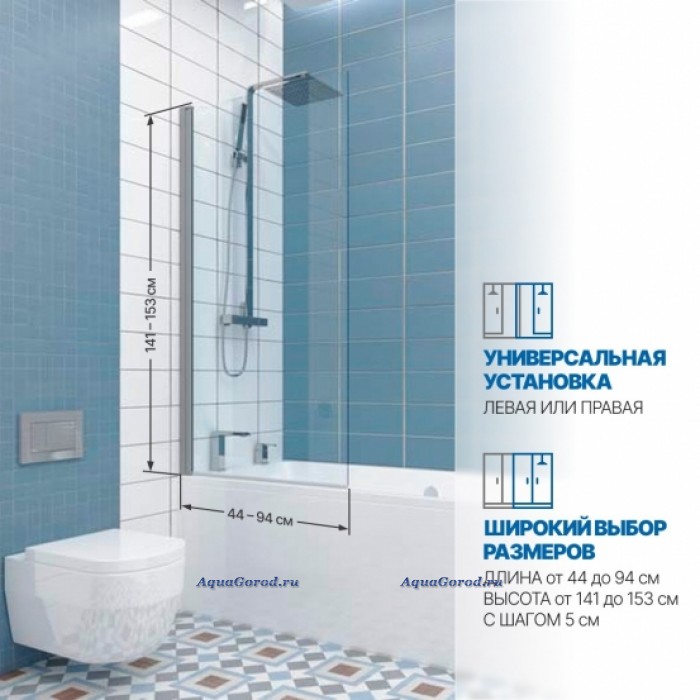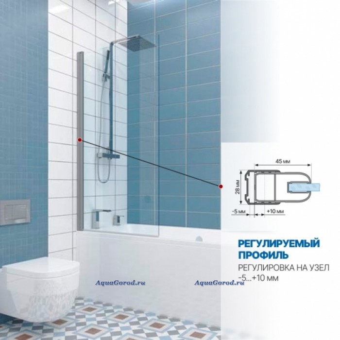 - Подходит для всех прямоугольных ванн, крепится к стене