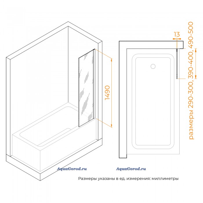 Шторка на ванну RGW 50 прозрачное стекло профиль хром