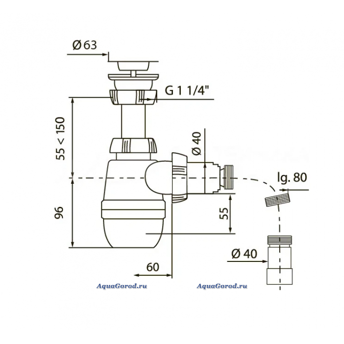 Сифон для раковины Wirquin Минор 32 мм бутылочный матовый белый