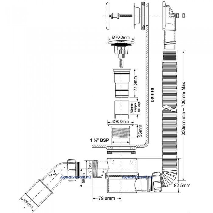 Сифон для ванны McALPINE кнопка с раздвижным переливом 1 1/2 белый