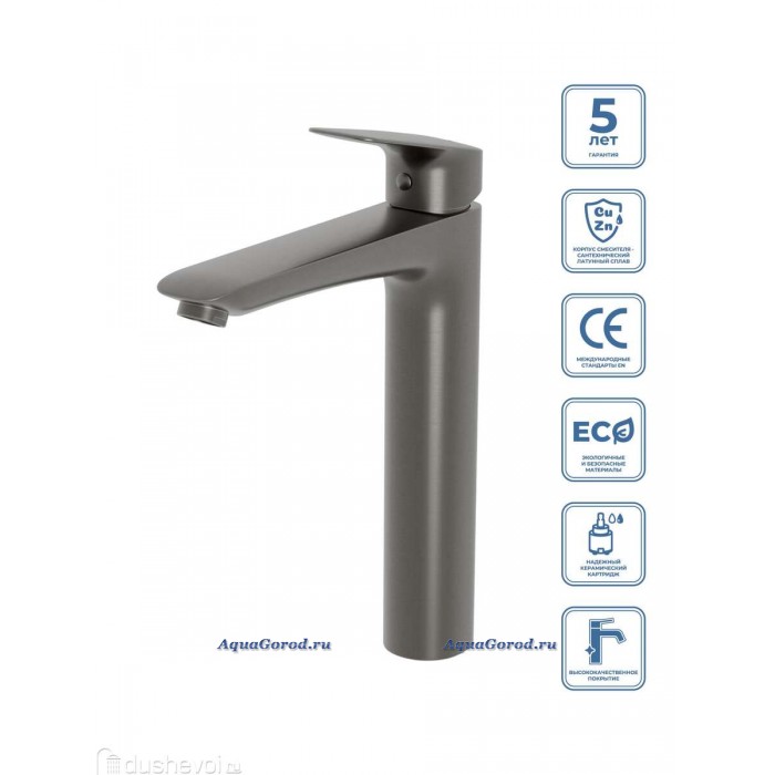 Cмеситель BelBagno для накладных раковин без донного клапана оружейная сталь