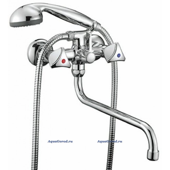 Смеситель в комплекте с гибким душевым шлангом и душевой лейкой