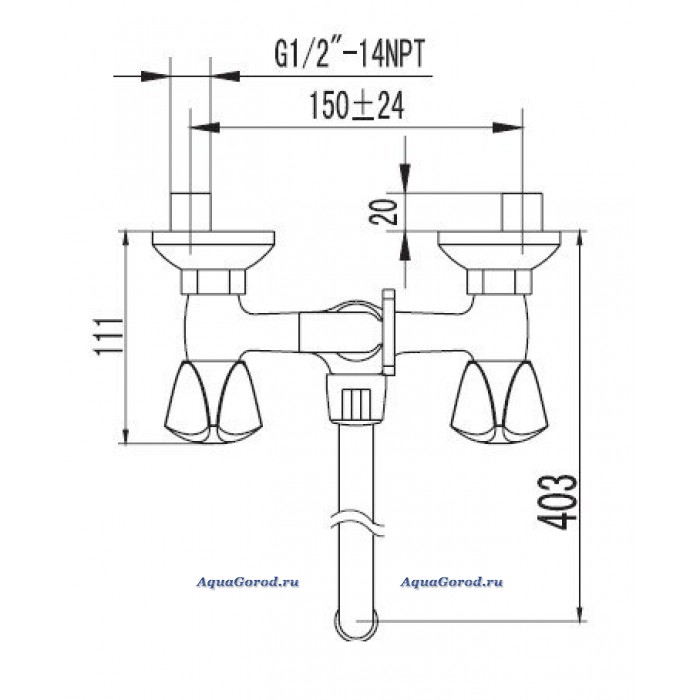 Двухвентильный смеситель с керамическими кран-буксами (угол поворота - 180°)