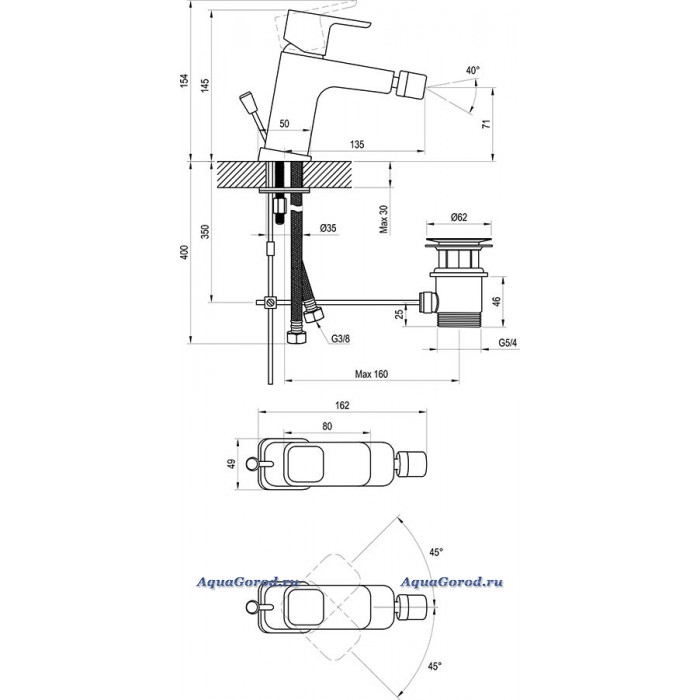 - Соединительные шланги: гибкий 400 мм, диаметр G3/8