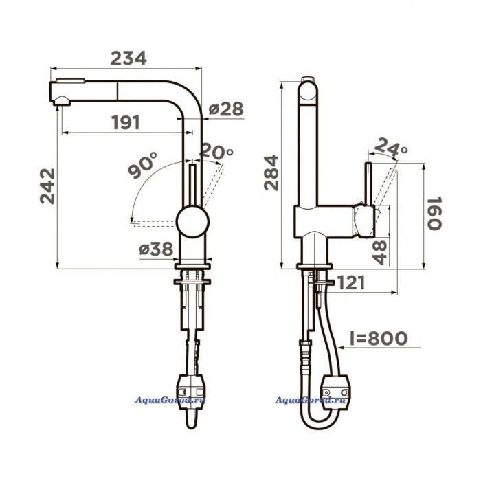 - Высота излива, мм: 242