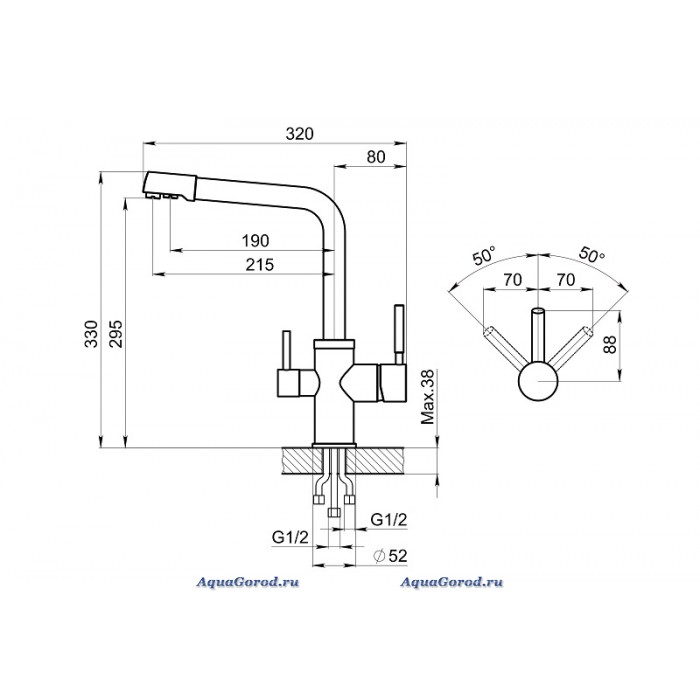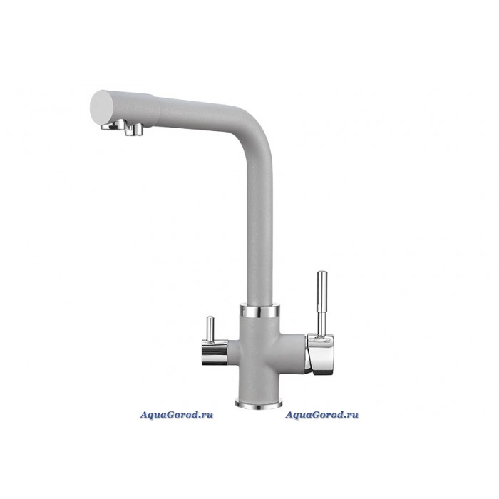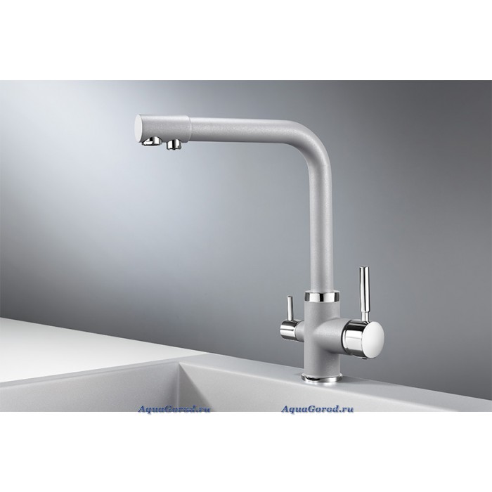 Смеситель в цвет моек из искусственного гранита Granula GR-2015 выполнен из высококачественной латуни. Он с высоким Г-образным изливом, что очень удобно при наборе глубокой кастрюли или вазы. Есть отдельный кран для подключения питьевой воды. С помощью небольшой удобной ручки, находящейся сбоку легко отрегулировать до нужной температуры воду. Смеситель для кухни Гранула работает практически бесшумно, создавая ровный поток струи воды. С помощью смесителя в цвет мойки из искусственного камня создается единый гармоничный стиль и максимальная функциональность с кухонным гарнитуром.