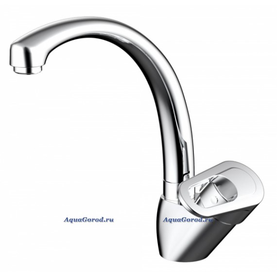 Современный дизайн в лаконичном исполнении с удобной ручкой из цинка в виде петли, расположенной сбоку и высоким поворотным изогнутым изливом