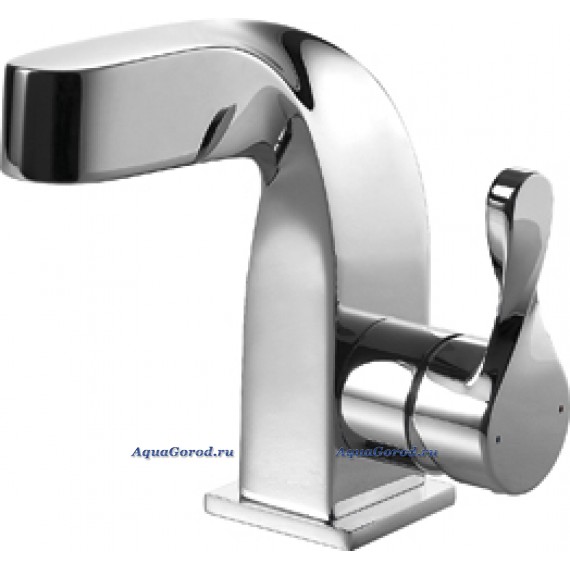 Современный дизайн в необычном исполнении с удобной ручкой из цинка в виде рычага, расположенной сбоку и фиксированным низким изогнутым изливом