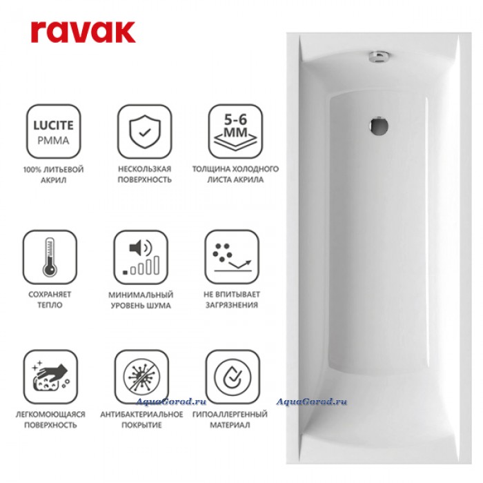 Акриловая ванна прямоугольная RAVAK Classic 150x70 N, цвет белый