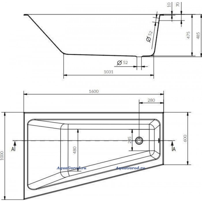 Ванна акриловая Cersanit Crea 160x100 левая, встраиваемая