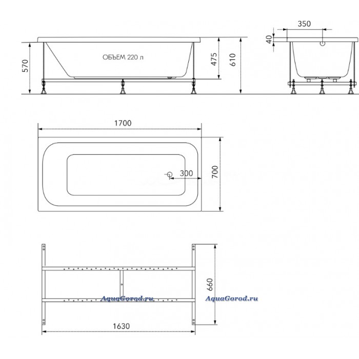 Длина, см 170 Ширина, см 70 Глубина, см 47.5
