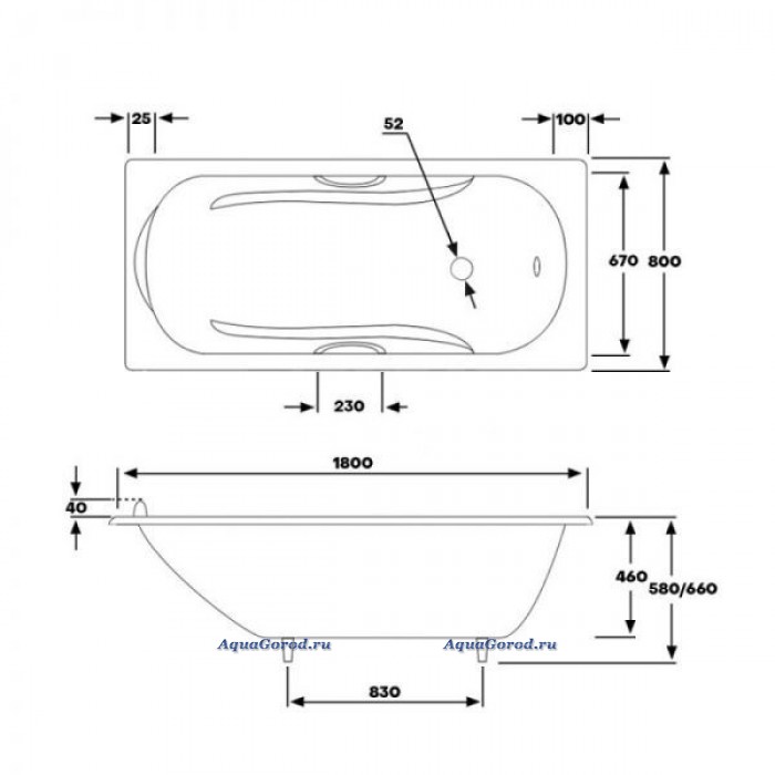 Ванна стальная прямоугольная размером от 1,8м*0,8м | 3500 руб. |