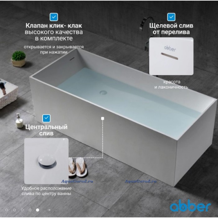 Ванна из искусственного камня ABBER Stein AS9642-1.8 белая матовая