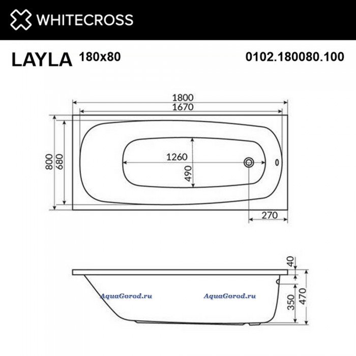 Ванна WHITECROSS Layla "ULTRA" 180x80 гидромассаж форсунки золото