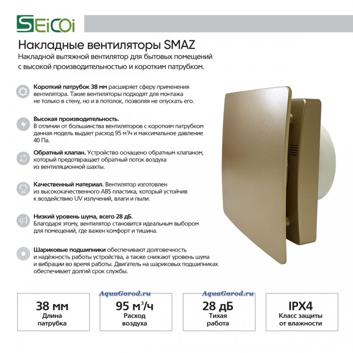 Накладной вентилятор Seicoi Floxy Design 100 Gold SMAZ04-01 золото
