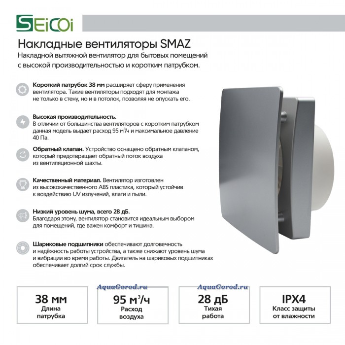 Накладной вентилятор Seicoi Floxy Design 100 Silver SMAZ04-01 серебряный
