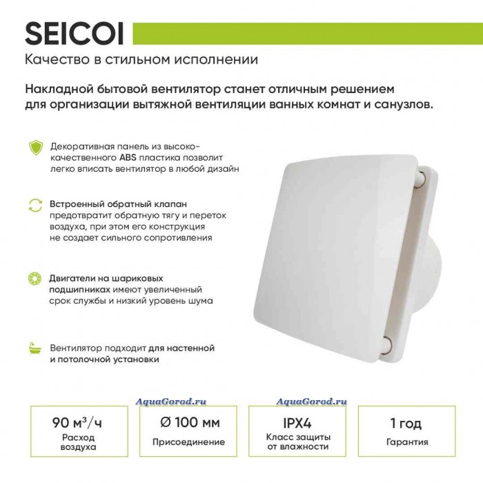 Вентилятор Seicoi 100 White HXYT04-01 накладной вытяжной белый